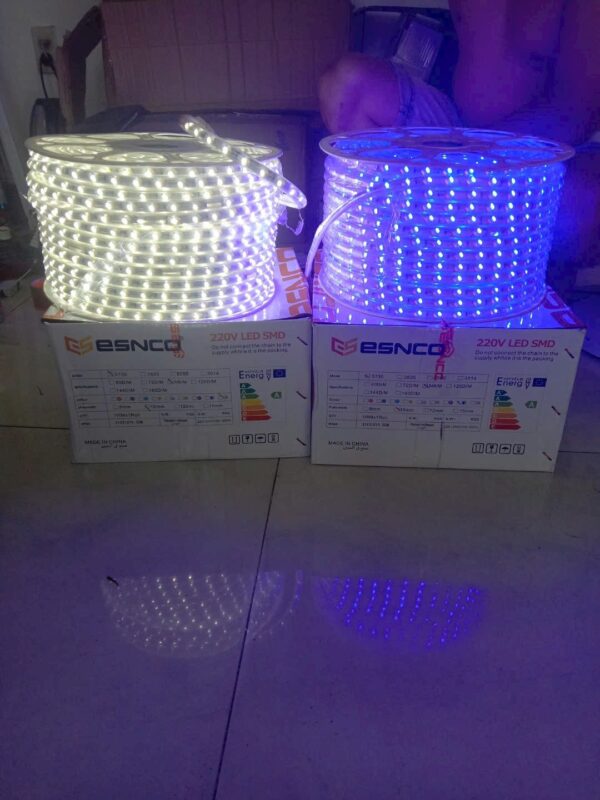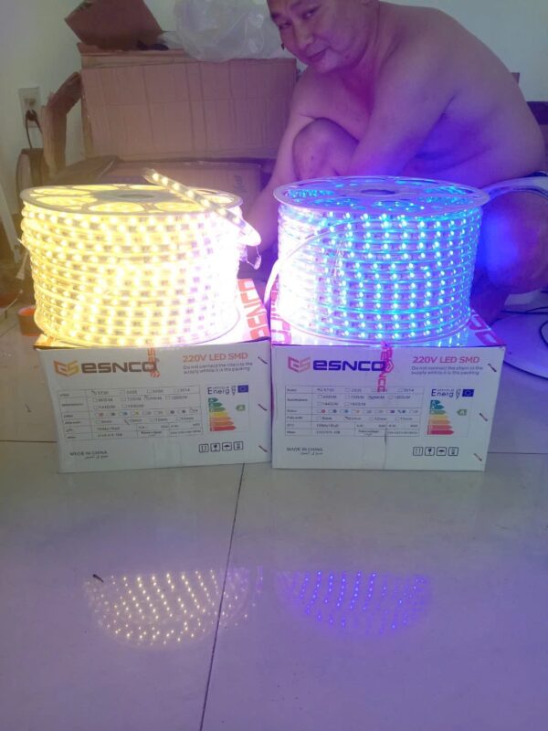 Đèn Led Dây 5730 96d 10mm 2 Hàng Chéo 3 Chế Độ Vàng Dương Tím của ESNCO có IP20 (trong nhà) và IP65 (ngoài trời) — chọn đúng loại theo môi trường lắp đặt.