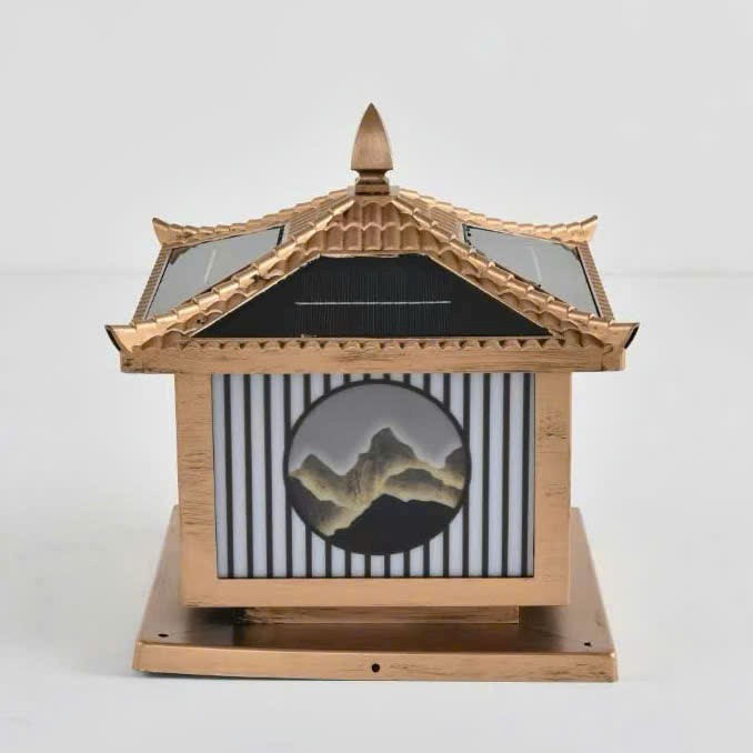 Đèn Trụ Cổng Nlmt Sơn Thủy Đồng 20cm 3 Chế Độ — Đèn năng lượng mặt trời ESNCO Chính Hãng